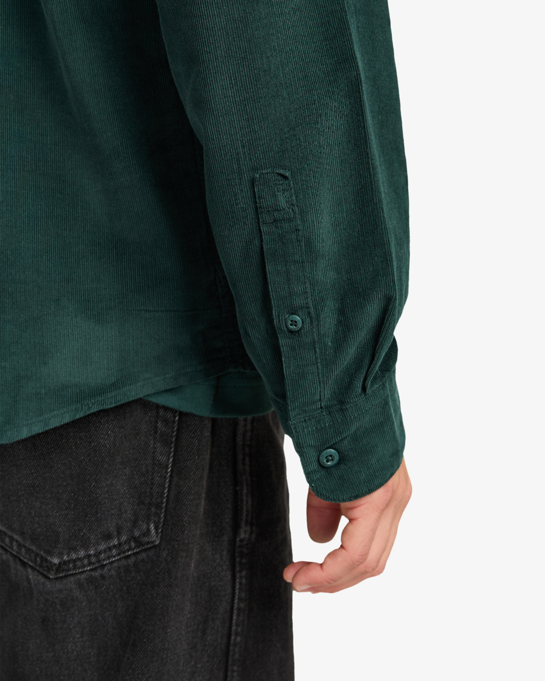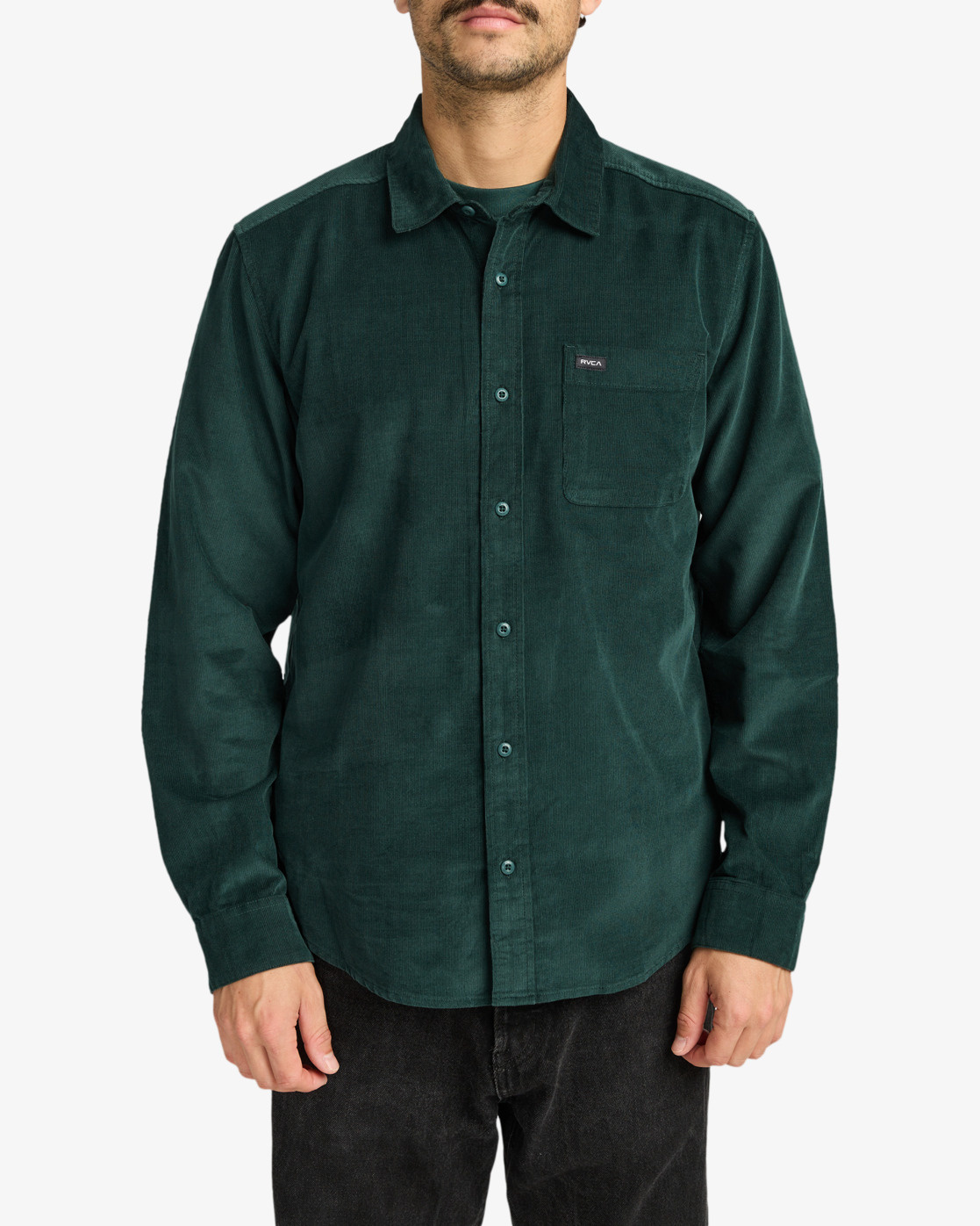 RVCA solo label at chest pocket top hem