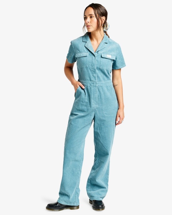 Details: overall met korte mouwen, zakken op de heupen, borstzakken, opgestikte zakken op de rug, elastische tailleband aan de achterkant, verborgen knoopsluiting, omslag met kartels
