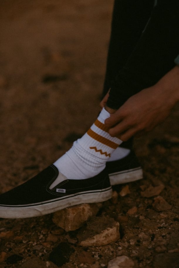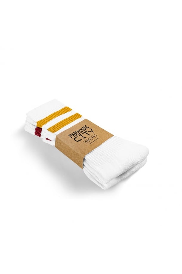Klassieke en superzachte sokken in perfect bij elkaar passende tinten wit, honing en bourgondisch rood. Een echte oldschool en karakter gesloten in één vorm. Een perfecte basis en een zeer stijlvolle toevoeging aan vele combinaties. Het model maakt gebruik van een verlengde en tegelijkertijd maximaal losgemaakte bovenkant in de vorm van een boord - wat de mogelijkheid biedt voor elke styling, pasvorm en tegelijkertijd maximaal comfort elke dag. De combinatie van 80% katoen, 15% polyamide en 5% elastaan garandeert een hoge hygroscopiciteit, duurzaamheid en buitengewoon comfort. Unisex sokken.