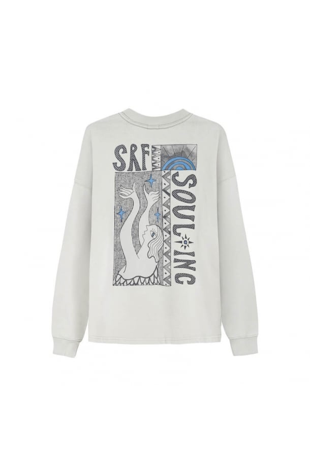 Echte alledaagse comfort in een nieuwe versie - een combinatie van een oversized vorm met een volledig nieuwe breikwaliteit; extreem dicht, met een verhoogd gewicht van 270G. Soulinc LS is een frisse en veelzijdige combinatie van een Dirty White basis met moderne graphics in perfect bijpassende tinten grafiet en blauw. De gebruikte watertechniek vermengt de print met de structuur van het breisel, wat zorgt voor de beste duurzaamheid. Extra naden werden gebruikt bij de productie van de lange mouw, wat de duurzaamheid van de naden garandeert. De halslijn is afgewerkt met een katoenen ribbel, wat zorgt voor een betere pasvorm. Contrasterende kettingsteek op de schouders voegt een buitengewoon visueel effect toe, en interne afwerking met bies stabiliseert de vorm en vorm van de schouders. We hebben ook een hanger toegevoegd, die niet alleen dient als een decoratief element, maar ook uitzonderlijk praktisch is. Een natuurlijk merklogo label is in de zijnaad genaaid. Het hele ontwerp is afgewerkt met een zichtbare SRF-print op de borst en een subtiele valk borduursel op de mouw. De versie is speciaal voor vrouwen.